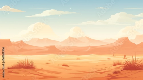 Naklejka premium Serene Desert Landscape with Mountains, Cacti, and a Vast Expansive Horizon...