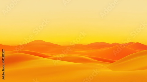 Obraz premium Serene desert landscape with rolling dunes bathed in warm yellow and orange...