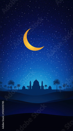 Fototapeta premium serene desert silhouette with crescent moon and mosque