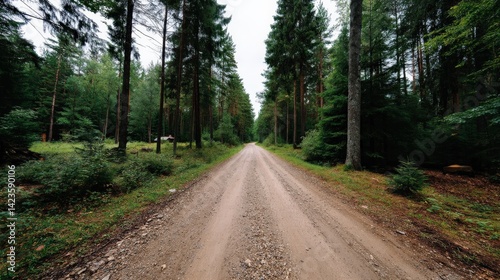 Fototapeta premium Serene Dirt Path Through Lush Green Forest Surrounded by Tall Pine Trees and Natural Scenery