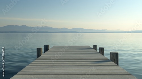 © Aris Suwanmalee, Fototapeta premium Serene dock extending into calm waters.