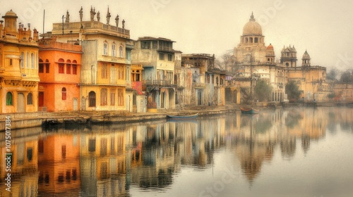 Naklejka premium Serene Early Morning View of Tranquil Lake Landscape