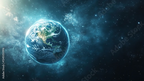 © CLOVER BACKGROUND, Obraz premium Serene Earth Day Background Featuring Blue Cosmic Elements