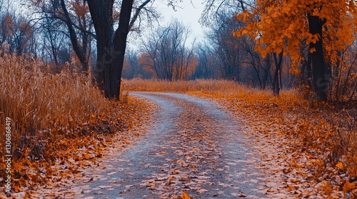 © Nuntapuk, Fototapeta premium Serene Empty Path Through Leafless Forest