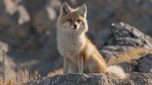 © Artajar, Fototapeta premium Serene encounter with a corsac fox in its natural habitat a portrait of adaptable wildlife in arid ecosystems and desert landscapes with earthy tones