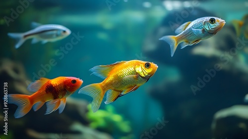 Fototapeta premium Serene Exotic Fish Swimming Gracefully in Vibrant Aquarium