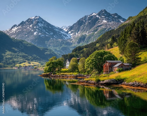 Fototapeta premium Serene fjord landscape with mountain reflections