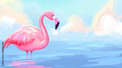 Fototapeta premium Serene flamingo at dawn the tranquil waters