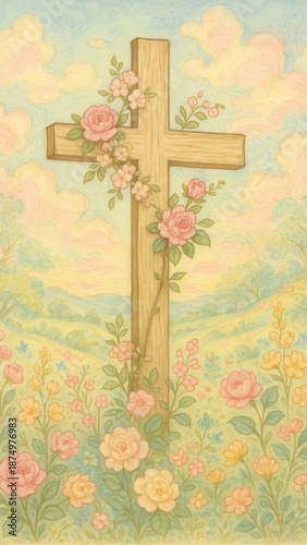 © Rawpixel.com, Obraz premium Serene floral cross mobile wallpaper