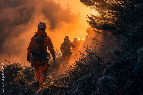 © Exotic Escape, Obraz premium Serene Forest at Dawn Showcasing Trees Being Cut Down by Workers