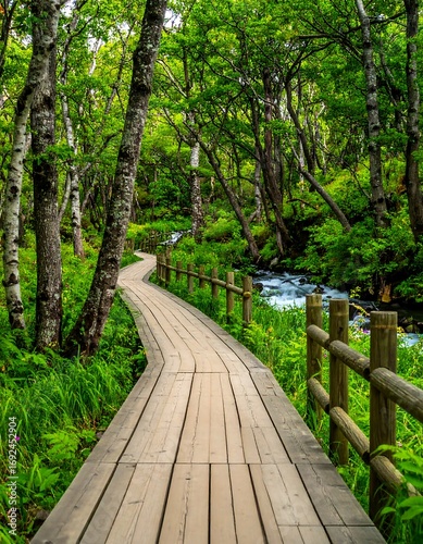 © Laniics89, Fototapeta premium Serene forest boardwalk path