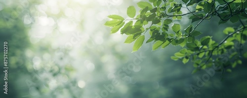 © Analogue, Obraz premium Serene Forest Canopy Wallpaper: Minimalist Style with Soft Light and Subtle Depth of Field