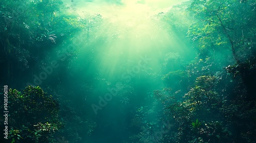 © Biggy, Fototapeta premium Serene Forest Landscape with Sunlight Rays and Misty Atmosphere