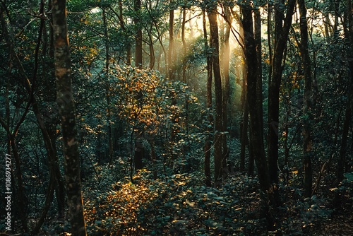 Obraz premium Serene Forest Light: A Glimpse of Nature's Tranquility