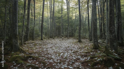 © arri, Obraz premium Serene Forest Path Covered In Fallen Leaves