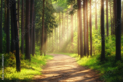 © Bendix, Fototapeta premium Serene Forest Path: Embrace Tranquility and Nature’s Peaceful Ambiance