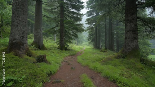 Fototapeta premium Serene Forest Path in Misty Landscape