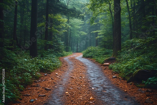 © md, Fototapeta premium Serene Forest Path in Misty Rain