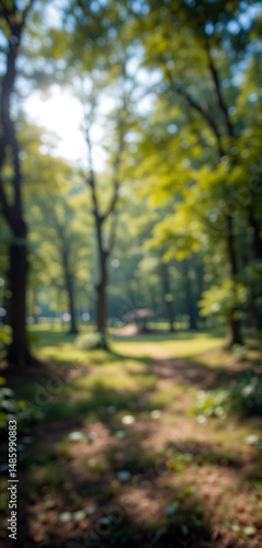 © Noman, Naklejka premium Serene Forest Path in Sunny Daylight