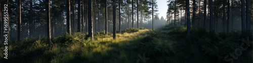 Obraz premium Serene forest path nature hdr panorama view