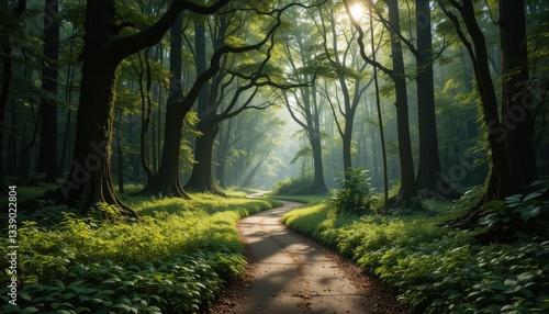 Obraz premium Serene forest path nature landscape tranquil environment natural light