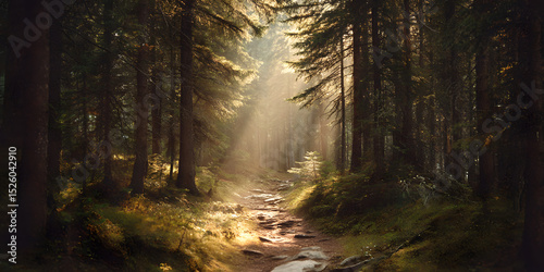 Fototapeta premium Serene Forest Path Through Lush Woodland