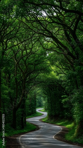 © YEASIN, Fototapeta premium Serene Forest Path Under Lush Green Canopy