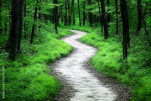 Fototapeta premium Serene Forest Path Winding Through Lush Greenery