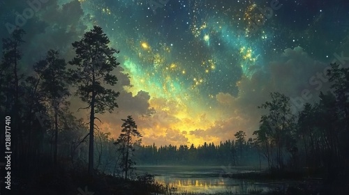 © Zannatul, Naklejka premium Serene Forest Path with Lush Greenery and Sunlit Foliage