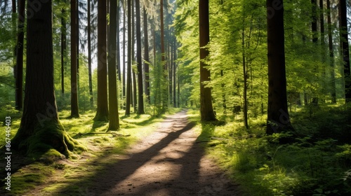 © Shades3d, Fototapeta premium Serene Forest Paths with Sunlight.