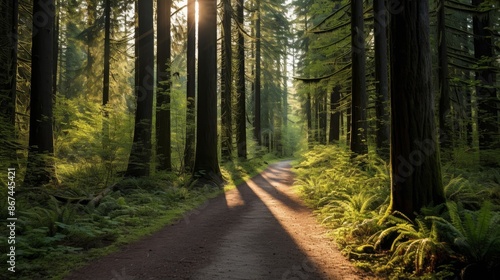 © Shades3d, Obraz premium Serene Forest Paths with Sunlight.