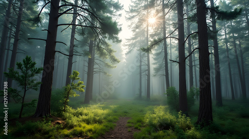 © TJantunen, Naklejka premium Serene Forest Pathway
