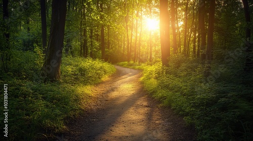 © CLOVER BACKGROUND, Obraz premium Serene Forest Pathway at Sunrise