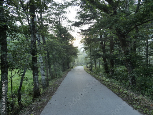 © KanP Studio, Fototapeta premium Serene Forest Pathway Surrounded by Lush Green Trees