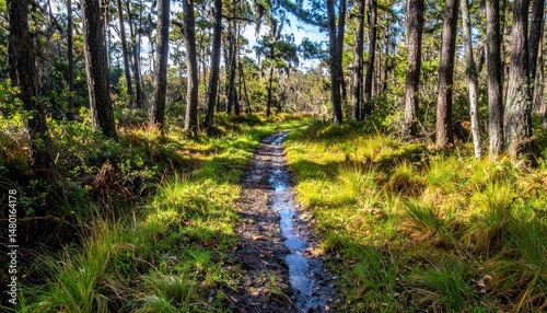 © Kitta Studio, Fototapeta premium Serene Forest Pathway Surrounded by Lush Greenery and Trees