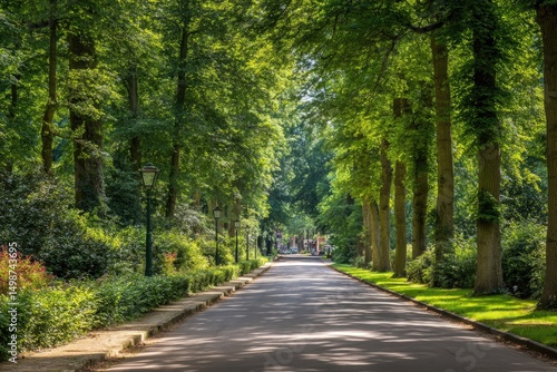 © Karaeng, Fototapeta premium Serene Forest Pathway Under a Canopy of Green
