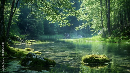 © atar, Fototapeta premium Serene Forest River Landscape
