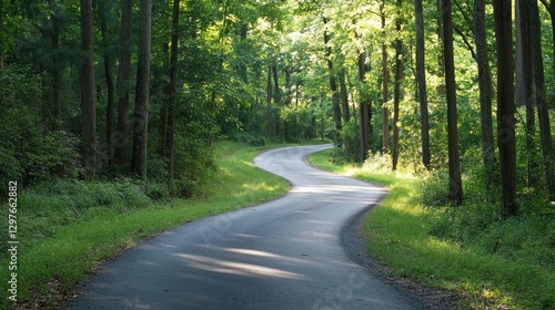 Fototapeta premium Serene Forest Road: A Winding Path Through Lush Greenery
