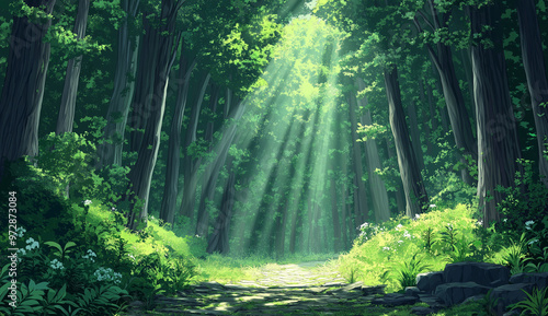 Fototapeta premium Serene forest scene with a sunlit path