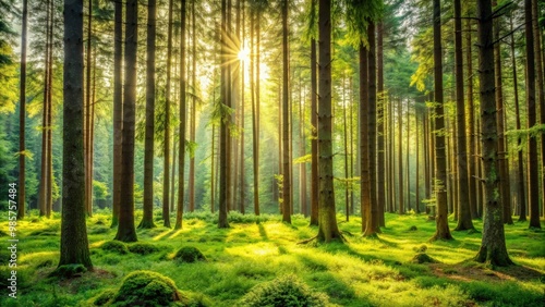 Fototapeta premium Serene forest scene with tall trees and lush greenery
