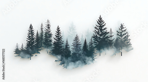 © BlueEchi, Naklejka premium Serene Forest Silhouette A Minimalist Representation of Nature's Tranquility with Misty Trees