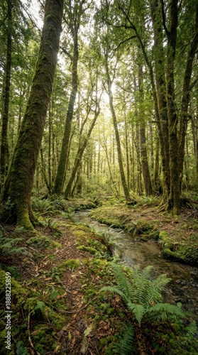 Obraz premium Serene forest stream pacific northwest nature photography lush greenery...