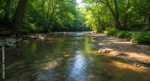 © AS Studio, Obraz premium Serene Forest Stream Tranquil Nature Photography