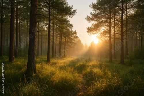 Obraz premium Serene forest sunrise scene