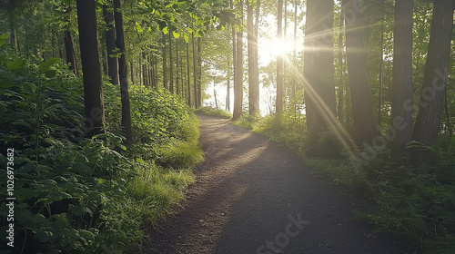 Fototapeta premium Serene forest therapy walk, mindful nature connection