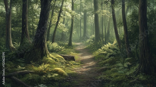 © YauheniB, Obraz premium Serene forest trail with lush greenery