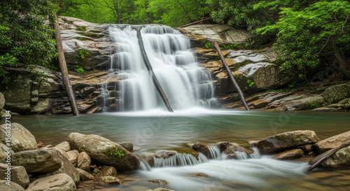 Obraz premium Serene Forest Waterfall Cascading Over Rocks