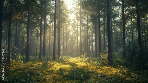 © IbneImam Studio, Obraz premium Serene Forest with Sunlight - Nature Background