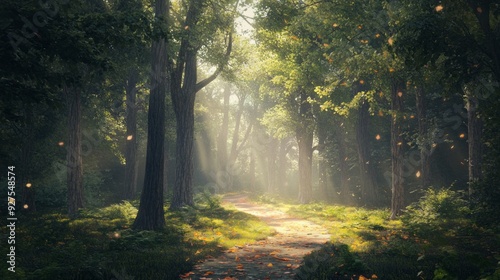 © Kopgz-41, Naklejka premium Serene Forest with Tall Trees - Stock Photo e006716a-5d22-43ea-8672-eea52524f01f