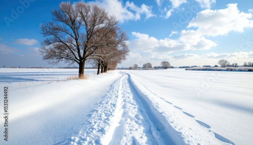 © Kitta Studio, Obraz premium Serene Frozen River Pathway Through Vast Snow-Covered Landscape